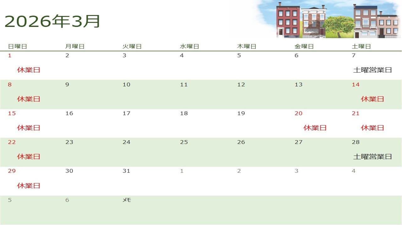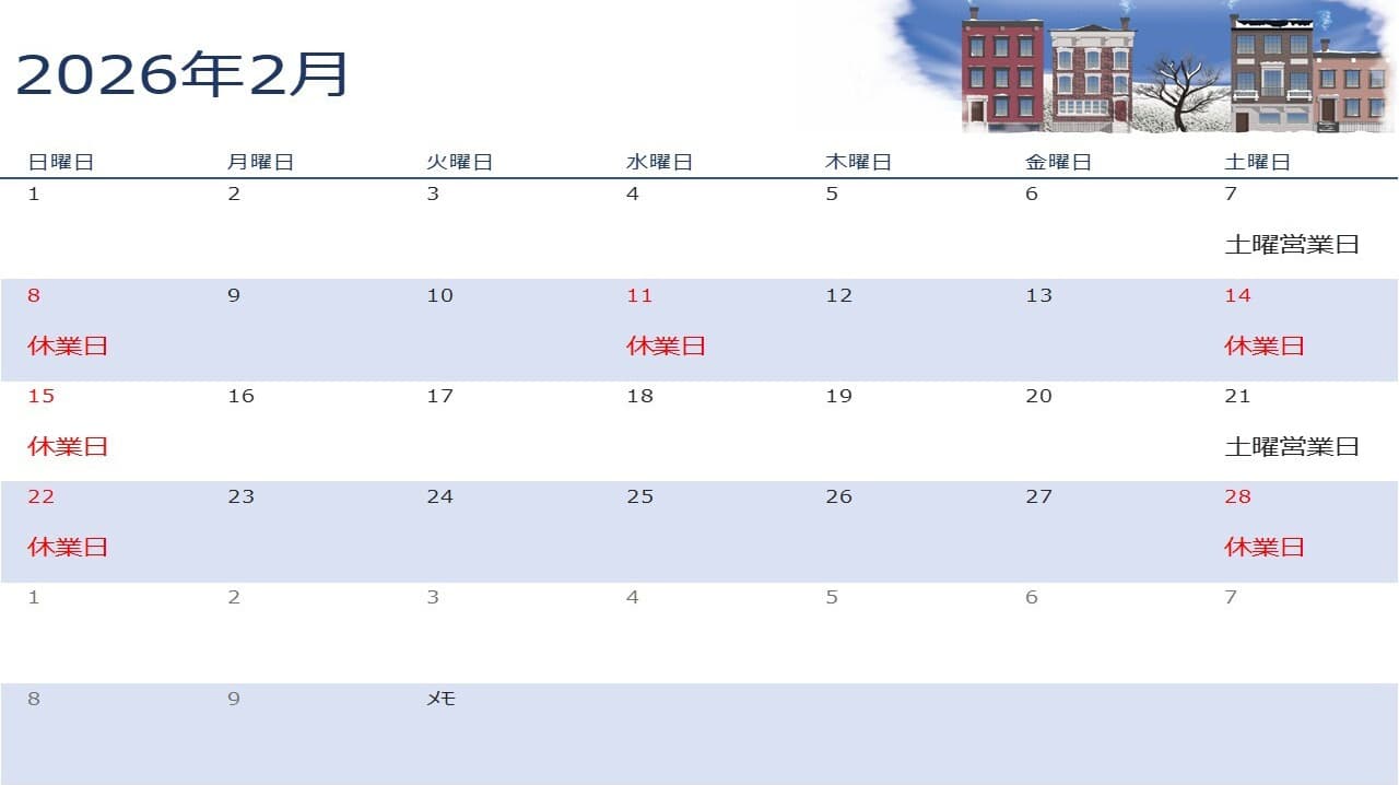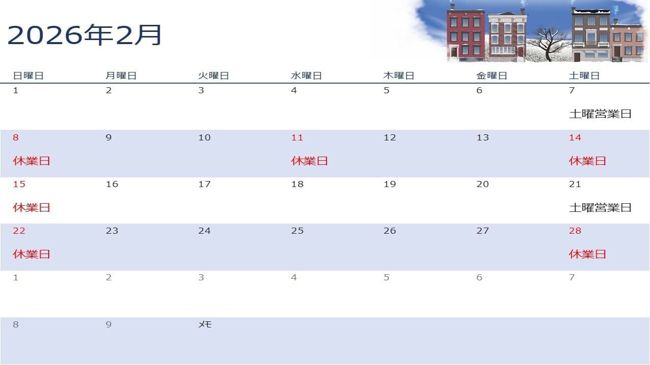 | 定休日 | 土(第2、第4)・日・祝日・年末年始・お盆期間中 |